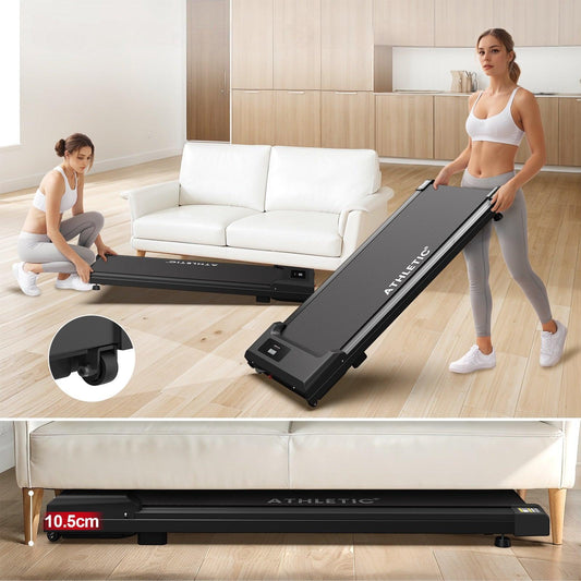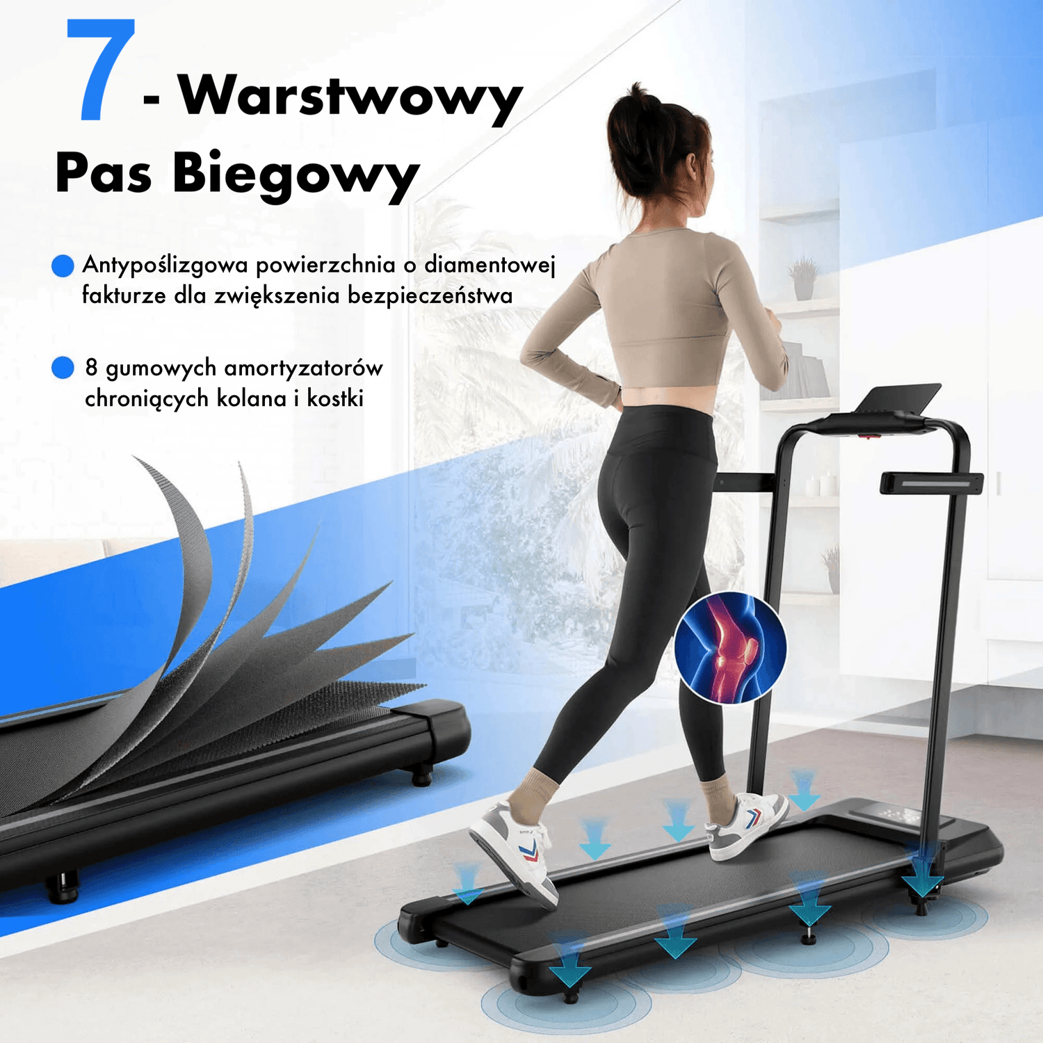 Mache dir keine Sorgen um Platzmangel! Das faltbare Design des Laufbands ermöglicht eine einfache Lagerung, selbst in kleinen Wohnungen. Dank der integrierten Räder lässt es sich leicht bewegen und nach dem Training lässt es sich schnell unter dem Bett oder hinter dem Sofa verstauen. Es ist die perfekte Lösung für alle, die Wert auf platzsparende Mobilität legen.